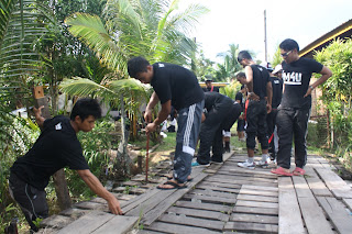 Pada sebelah petangnya pula kami membetulkan jambatan yang menghubungkan rumah Pak Cik Asri kerana jambatan tersebut sudah lama. Kami membetulkannya agar jambatan tersebut tidak roboh. Kami juga membersihkan longkang berdekatan supaya air dapat mengalir dengan baik.
